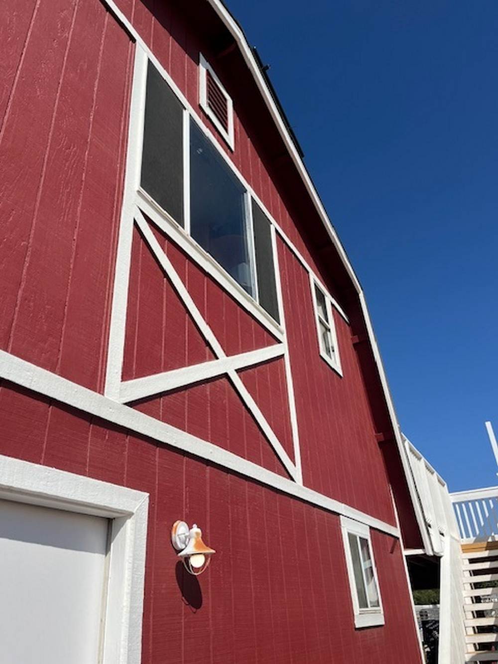 The crisp white frames were chosen to highlight the home’s barn-style design while creating a striking contrast against the darker siding. This simple yet impactful upgrade brightened the overall appearance, giving the home a refreshed and polished look. The vinyl material also ensures long-lasting durability and low maintenance, resisting fading, cracking, and warping even under Southern California’s sun.